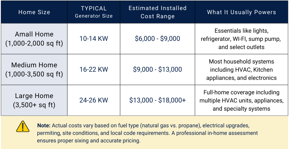 Whole-Home Generator Cost Comparison by Home Size